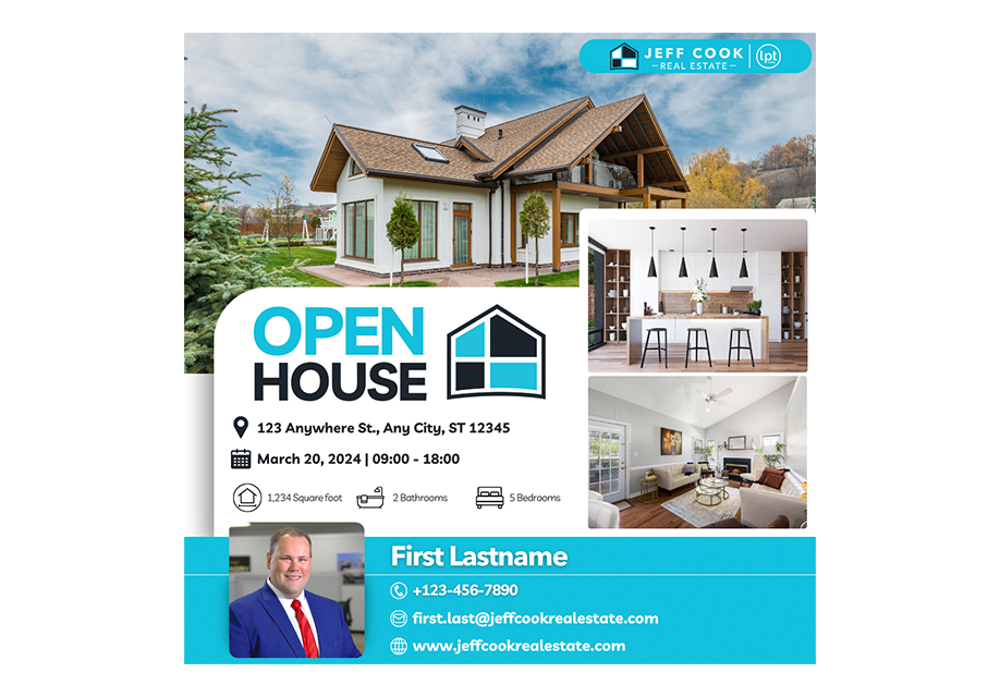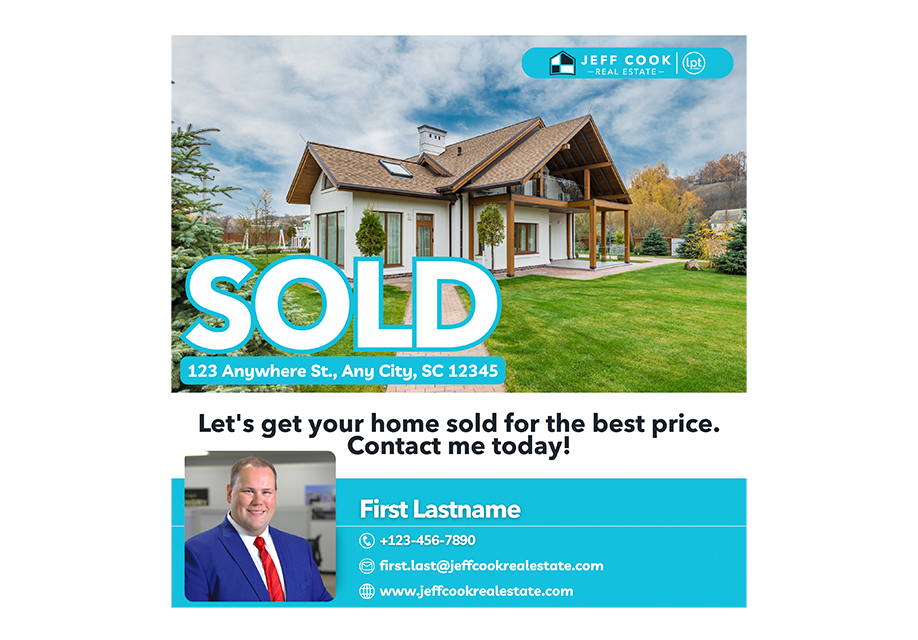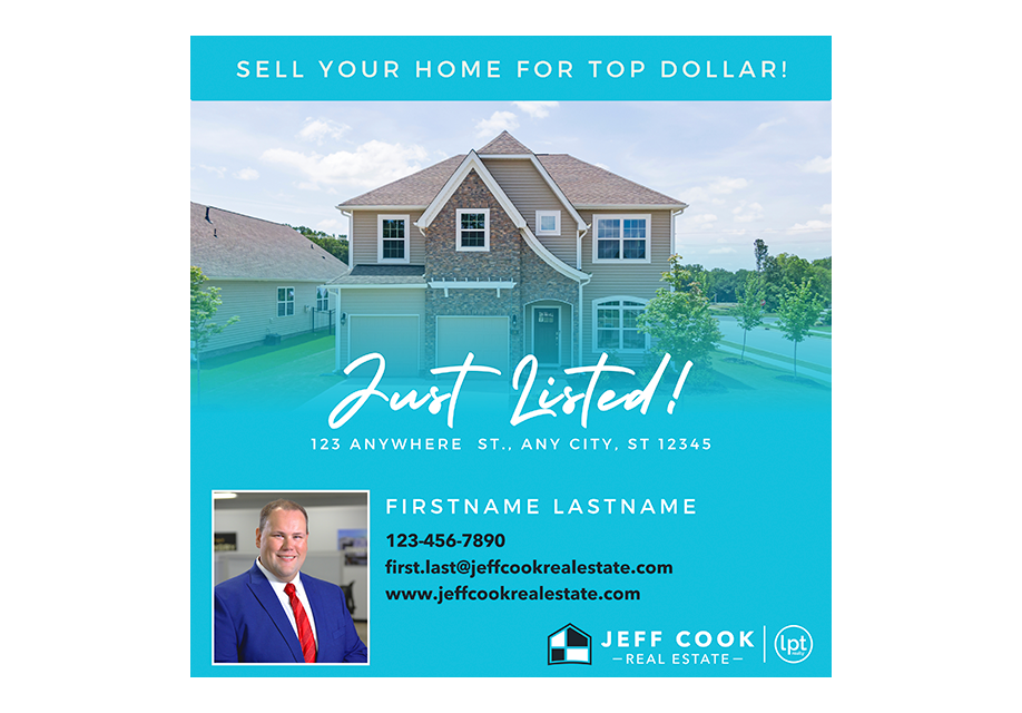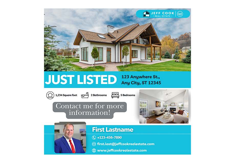 Use this social template when you want to highlight yourself on social. Perfect for sharing your photo and contact info with Jeff Cook Real Estate branding!
